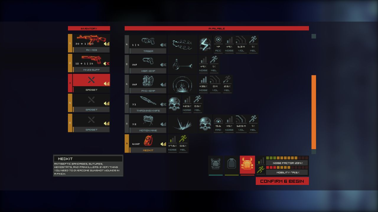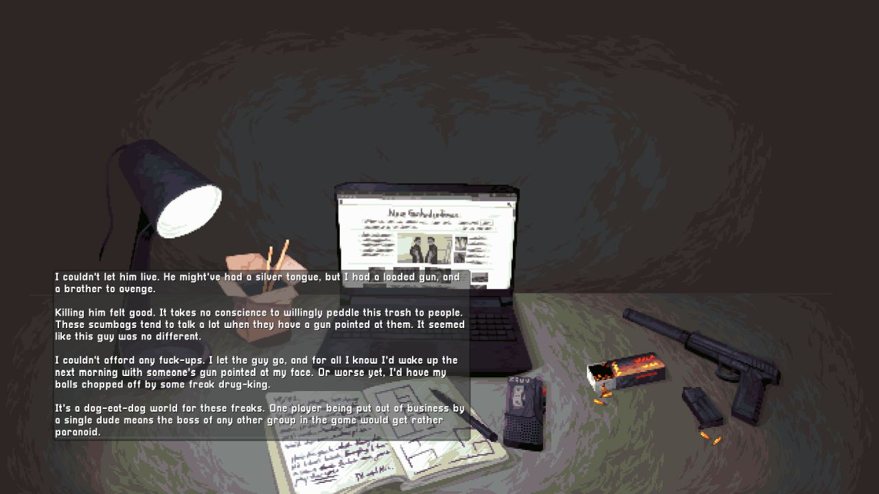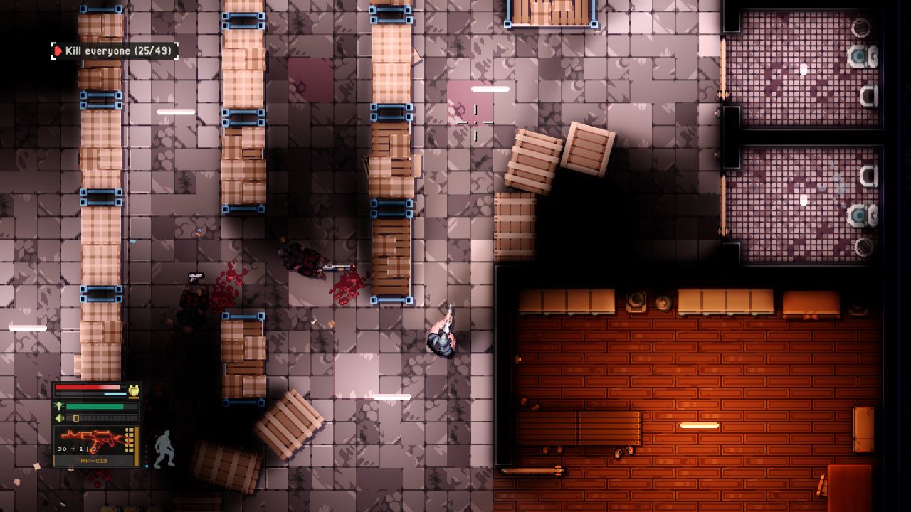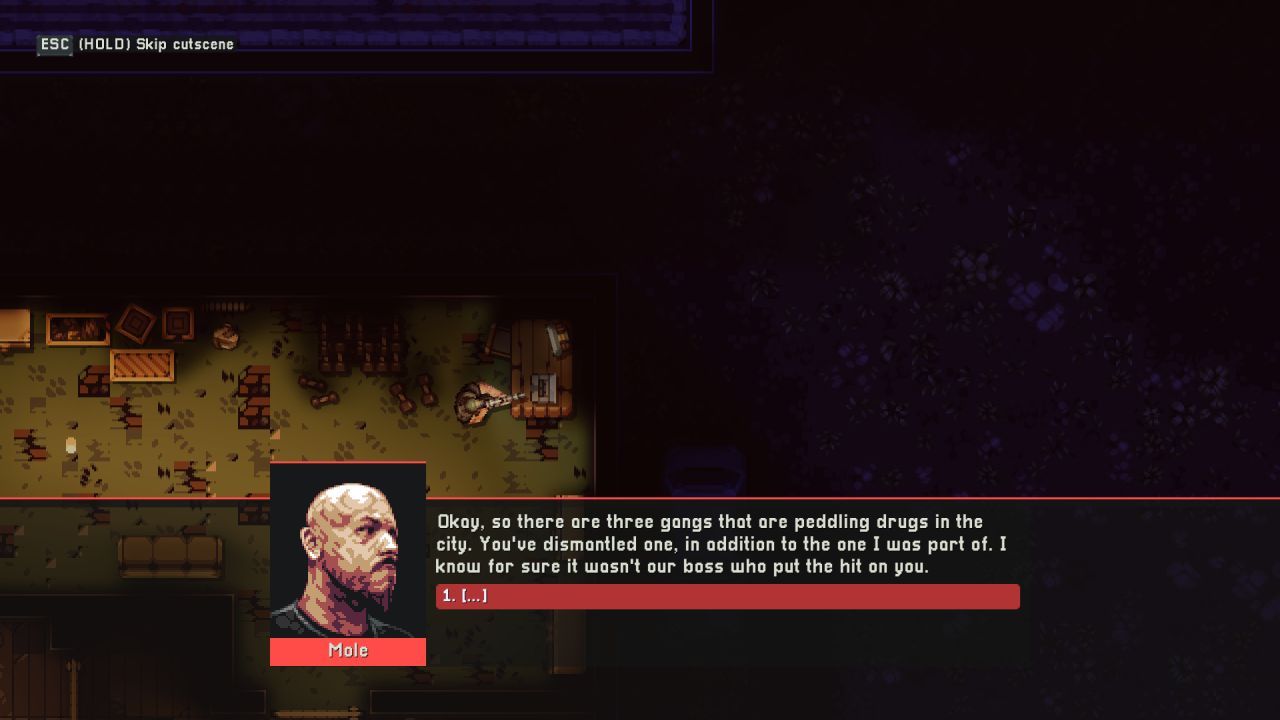 As I started the first mission, I tried the stealth approach, which I quickly abandoned since I was detected rapidly trying to hide the body in a dumpster, so it quickly turned into a gunfight. I died a few times on the first level since I chose the most challenging mode. I highly advise against this if you are new to the genre. After murdering about a dozen of the junkies, I did not find the main guy, so the story continued. Worth noting was that the first mission’s name was Druggie Ghetto, which I found hilarious.