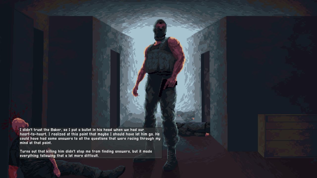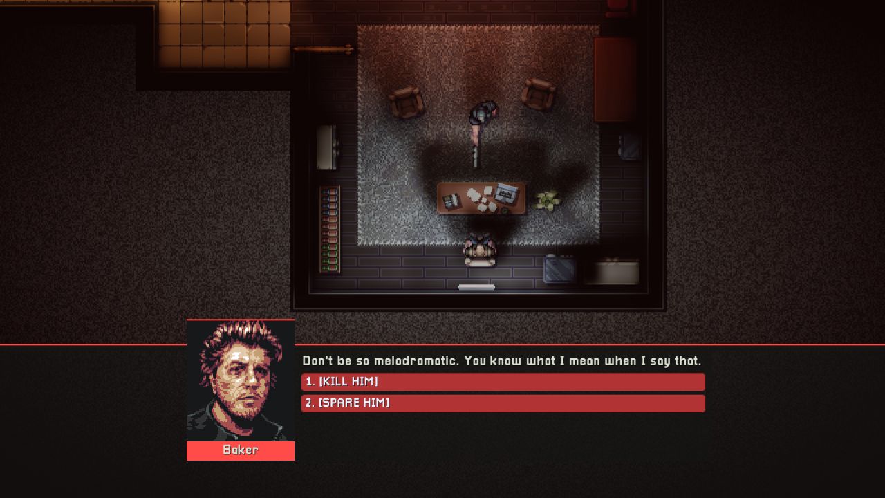 In the Baker’s panic room mission, I got to choose whether I was going to spare the Baker’s life or not; I decided not to, to follow up with my character’s rage and determination that I felt so far in the game. It could have been a better choice. If you kill the Baker, you cannot access your loadout anymore – you have to make do with the weapons you find in the following levels.
